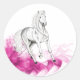 fancy horse motif, grey stallion & pink waves classic round sticker