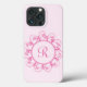 This soft pink iPhone case is decorated with a fancy monogram in a circle of swirls, making it a perfect gift for the girl in your life.