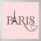 Pink and light pink polka dots pattern as background written Paris with the eiffel tower in the place of the letter a. Chic girly colours!