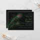 A dramatic invitation in black with two, vibrant peacock feathers.