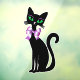Fancy Pretty Black Cat Green Eyes Pink Bows Window Cling