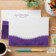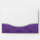 Elegant special occasion envelope done in white, with a purple satin looking damask pattern edged with faux diamonds, on the lower front and back. Personalise the return address to suit your needs. Great for special occasion invites, thank you cards and announcements.
