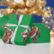 Cute, little reindeer wearing a cape and hat on a green background, is featured on this Holiday gift wrapping paper. This colorful design is perfect for wrapping gifts for children and the young at heart! Printed in the USA. The reindeer design is also available in a set of ten gift tags too!