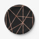 Fancy Rose Gold and Black Geometric Pattern Paper Plates