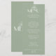 A fancy and retro luxury bright wedding dinner menu. Which features chic template design of old money vintage sage green background and white typography and fancy menu. Perfect and matching with the whole suite.