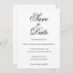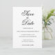 Minimalist wedding save the date with a black fancy script calligraphy paired with a modern all caps font.