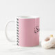 A pink colour mug with a wave black and white pattern complete with your custom fancy script monogram in the centre, just fill in the templates on the "customise this template" feature and pick your style.