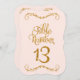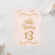Table Number 13 DESIGN COLLECTION: In pale pastel blush shell pink with a golden glitter metallic look with a dimensional effect that is perfect to coordinate with a wide range of weddings, bridal showers, business and formal reception events. This is a hand lettered calligraphy font with scrolls, swirls and elegant handwriting lettering. There is a lovely leaf swirl flourish at the top and bottom that accentuates the shape of the cut edge. You will need a number stand or frame to use these effectively - which are not provided. Available in numbers 1-25 stock, we can add additional numbers if your event is large enough to require them. We can also do custom colour combinations for a small additional fee. COLOR PALETTE: Ebony black and Faux Gold Glitter Metallic Look