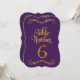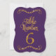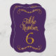 Table Number 6 DESIGN COLLECTION: In deep eggplant dark violet purple with a golden glitter metallic look with a dimensional effect that is perfect to coordinate with a wide range of weddings, bridal showers, business and formal reception events. This is a hand lettered calligraphy font with scrolls, swirls and elegant handwriting lettering. There is a lovely leaf swirl flourish at the top and bottom that accentuates the shape of the cut edge. You will need a number stand or frame to use these effectively - which are not provided. Available in numbers 1-25 stock, we can add additional numbers if your event is large enough to require them. We can also do custom colour combinations for a small additional fee. COLOR PALETTE: Ebony black and Faux Gold Glitter Metallic Look