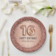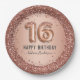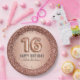 Fancy Script Pink Glitter Happy 16th Birthday Paper Plate