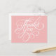 Fancy handwritten script 'Thank You' postcards in Powder Pink. Perfect for Weddings, Birthdays, Christmas, Showers or any other occasion. Powder Pink colour 'Thank You' postcards, if required, choose any other colour or add your own printed text, address or company name from the "Customise It" tab.