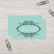 Elegant with a touch of vintage. Fancy scrollwork style oval frame, white fonts on seafoam background