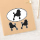 Standard Poodle with Continental Clip. Oval and die cut sticker set. These durable dog silhouette decals are waterproof and scratch resistant. Stick these black Standard Poodle vinyl stickers to your laptop, phone, notebook, water bottle, helmet, skateboard, or even your car. Visit Jenn’s Doodle World for even more dog breed vinyl decals and Poodle lover’s gifts.