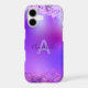 An exquisite iPhone case that showcases a captivating purple gradient design. Your name is elegantly inscribed at the heart of the case, presented in a refined cursive font. Meanwhile, your initial takes centre stage in a contemporary sans-serif font, a nod to modern aesthetics. The case's lower section boasts an exclusive splatter motif, dipped in a deeper hue of purple, creating an artistic contrast. Complementing this artistic flair is the glossy finish, elevating the overall look with a touch of refined sophistication.