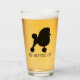 Enjoy a pint of your favourite cold beverage out of this unique 16 oz drinking glass. Fancy black Toy Poodle (lion cut) silhouette with custom text for your name or slogan. Makes a fun personalised gift for miniature Poodle Lovers. Visit Jenn's Doodle World for more custom drinkware and dog breed gifts.
