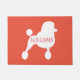 Personalise this Standard Poodle welcome mat with your family name, slogan, or delete the default text if you prefer no text at all. This vermillion red and white Standard Poodle design makes a wonderful gift for new home owners, newlyweds, dog dads, dog moms, and anyone who loves their pets like family. More colours are available. Visit Jenn's Doodle World for even more dog breed doormats and Standard Poodle lover’s home decor.