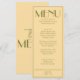 A fancy and retro luxury bright wedding dinner menu. Which features chic template design of old money vintage yellow background and olive green typography and fancy menu. Perfect and matching with the whole suite.