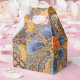 Gable style favour box with an image of fantastic blue, gold, orange, and brown floral batik. See the entire Bali Retreat Favour Box collection in the PARTY FAVORS section.
