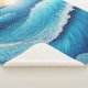Escape to a dreamscape with this enchanting seascape, where a surreal sunset bathes the ocean in opal, jade, iridescent, and soothing blue hues.