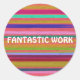 An abstract art design of horizontal paint stripes in rainbow colours of pink, turquoise, blue, green and yellow with Fantastic Work slogan suitable for a teacher.