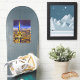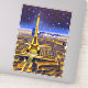Sticker in a semi-abstract ariel view of Paris, brightly lit, under a dark blue starry sky