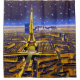 A semi-abstract aerial view of Paris, brightly lit, under a dark blue starry sky