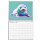 A different fantasy animal design from January thru December with an owl, reindeer, frog, crab, turtle, hare, baby seal, octopus, penguin, flamingo, starfish, and dolphin all on a solid colour background and not in that order.