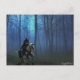 Fantasy Art Blue Knight on Horseback in Moonlight Postcard