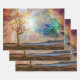 Fantasy Art Nothern Lights Landscape with Tree Wrapping Paper Sheet