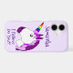 Fantasy art design of a unicorn with a purple mane and multi coloured horn. Do you believe in unicorns then this is for you. This mobile phone case is a must for anyone that loves the idea of unicorns and you can personalise it with a name or any other text. Should you require any help with the personalisation or would like some different colours on the unicorn then message us through the link below.