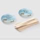 Beach theme wedding program fan, with graphics of a sandy beach with seashells and star fish, with light blue sky and water. Personalise the text for your wedding day. Matching products are available.