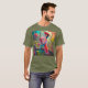 I give wanted to give this a 4 instead of a 5 because these Basic DARK T0shirts run unexpectedly SLIM or Narrow. Which is great if you do not have a potbelly, but I have a paunch. It isn't the shirt's fault that I've got a beer belly. The design and shirt itself is a quality cotton shirt. The color is more of a deep purple, but still a very pretty color. The Basic DARK T-shirts run a bit SLIMMER than the Basic Ts. The neck is a fraction narrower (or seems to be narrower) also. I'm a paunchy middle-aged woman and my neck is 12 inches (31cm) thick and the neckline fell about the same as in the photo of the man, and I had the desire to tug it a bit. So if you're a thick necked man or like loose shirts, be aware these are slimmer shirts. Once I get rid of my lockdown paunch it'll look great. The shirt washed well in cold water with no apparent bleeding. We don't have a dryer, so it hung dry. Did not shrink. Love the colors and the design. The design looks smaller on my shirt than it does on the model on-line. But still, it looks good on the shirt. The printing looks as it does on the model, just the size seems fractionally smaller. Washed garment in cold water, hung dry and design appeared unaffected.