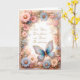 Pretty jewel-like butterfly surrounded by delicate pink, peach and blue flowers on editable card that's ideal for birthday, thank you, sympathy, anniversary, invitation, and other occasion card.