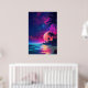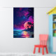 An an isolated tropical paradise, a poster depicted a full red moon casting its glow over emerald waters. It was said to be a gateway to a realm of undiscovered wonders. As the moonlight painted the beach with its fiery hues, the tranquil shores transformed into a sanctuary for those in search of adventure and the mysteries concealed beneath the vibrant lunar embrace.