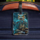 Fantasy Cute Brass Turquoise Owl Luggage Tag