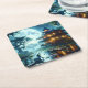 Fantasy Cute Cabin Lake Crocodile Square Paper Coaster