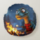 Fantasy Cute Dino Campfire Moon Round Cushion