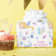 Adorable kids birthday wrapping paper features cute little mermaid with sea creatures. With greeting text "Happy 1st birthday" and the kid's name. All text can be customised.