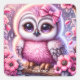 Fantasy Cute Pink Owl Sakura Square Sticker