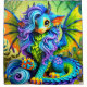 This shower curtain has a fantasy dragon on it.