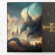 Fantasy fairytale style wedding invitation done in an old leather book looking tri fold invitation.  Menacing looking dragons and a castle, decorate the inside of the invitation, with pages done like old antique letters.  Personalise all the text fields for your special wedding announcement.