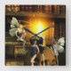 Wall clock with fairies books and skull candle