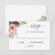 A wedding RSVP card design with trendy brush script text accent and a colourful floral corner with rustic pink and burgundy roses and greenery. This RSVP card coordinates with a matching wedding invitation.