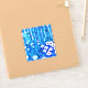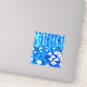 Sticker in a semi-abstract illustration of a fantasy forest with flowers, foliage, trees and birds, in shades of cobalt blue and white