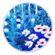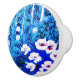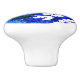 Knob in a semi-abstract illustration of a fantasy forest with flowers, foliage, trees and birds, in shades of cobalt blue and white