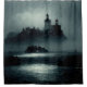 Fantasy Island Lighthouse Misty Foggy Dark Night Shower Curtain