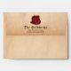 Fantasy mediaeval times Jewish personalised Bar Mitzvah envelope. This mediaeval times fantasy Bar Mitzvah envelope features a red velvet look on the inside, a simulated parchment paper outside, and a wax seal with a subtle Jewish Star of David.