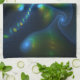 Fantasy Lights Abstract Blue Green Yellow Fractal Tea Towel