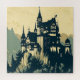 Look no further than this stunning design of a mediaeval castle, done in the style of a woodblock print. This illustration depicts a majestic castle perched atop a cliff. This design is sure to be a conversation starter and will add a touch of elegance and history to any room.