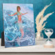 3D digital render of a beautiful fantasy mermaid on a blue ocean background